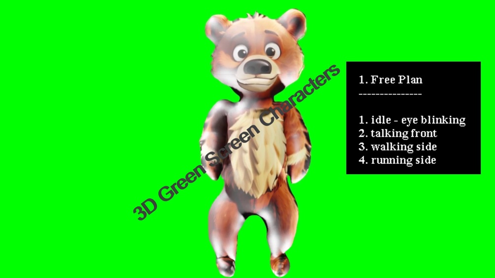 Cartoon Bear - 3D Green Screen Character Animation - Free Plan